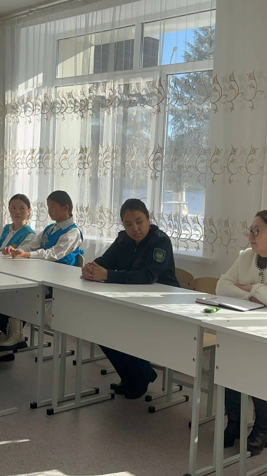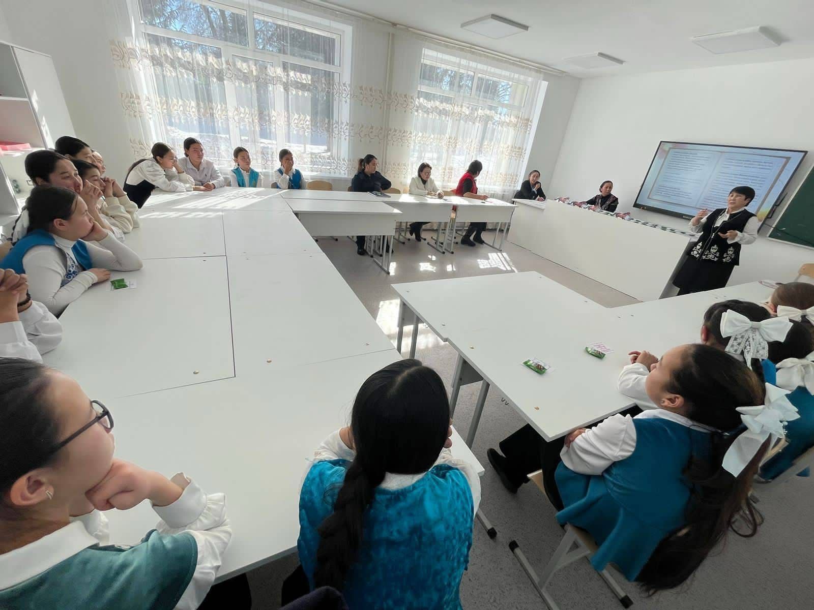 24.01.2025 жыл Тәрбие ісі жөніндегі орынбасар Бертаева Перизат "Қыз -тәрбиесі , ұлт тәрбиесі" тақырыбында 7-11 сынып қыздарының арасында жиналыс өтті.Оған мектеп директоры Абықанова Нүргүл, Кеген ЖПҚБ Ювеналды полиция тобының инспекторы полиция аға лейтенанты Анекеева Маржан, мектеп психологы Оқасова Бақыткүл, химия пәнінің мұғалімі Бостанова Жазира, қыздар ұйымының жетекшісі Төлегенқызы Гұлмира қатысты.